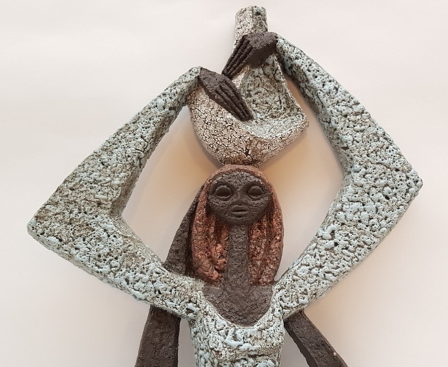 Aardewerk wandplaquette ontwerp Joop Puntman voor Amha Holland, jaren 60.