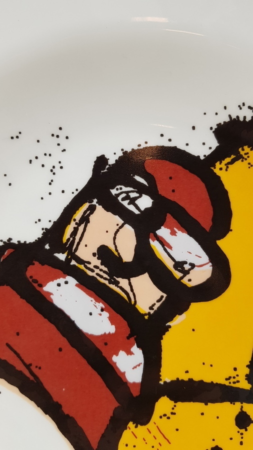 Aardewerken bord met decor van Herman Brood uitgevoerd door Plateelbakkerij Schoonhoven, eind 20e eeuw
