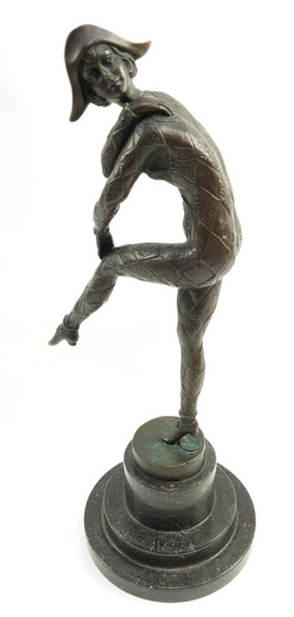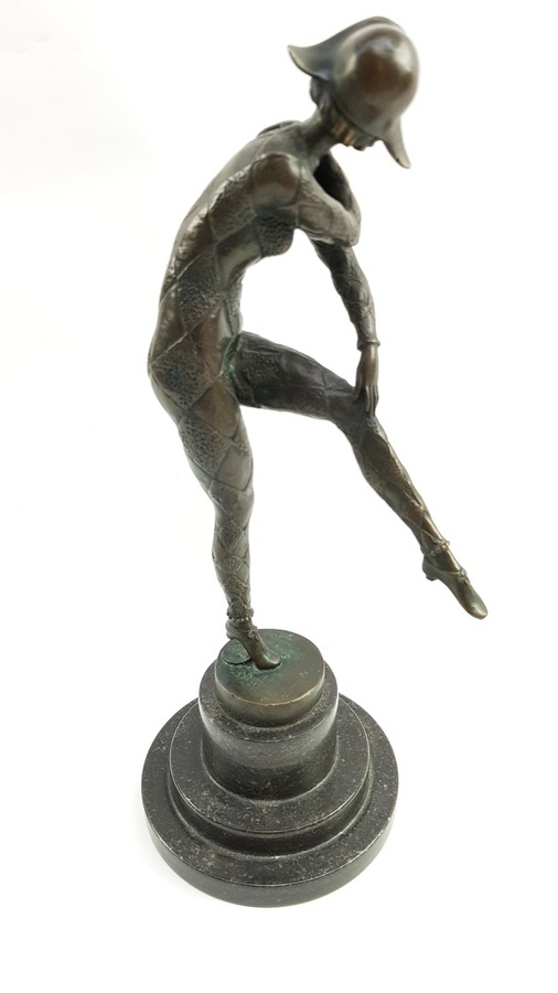 Danseres brons gemaakt door Roemeense kunstenaar D.H. Chiparus. Voet zwart marmer. |