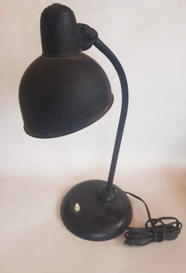 Metaal, "Bauhaus" bureaulamp uitgevoerd door Kaiser Idell, 1e helft 20e eeuw.