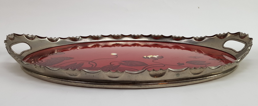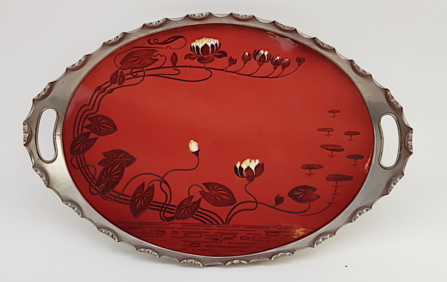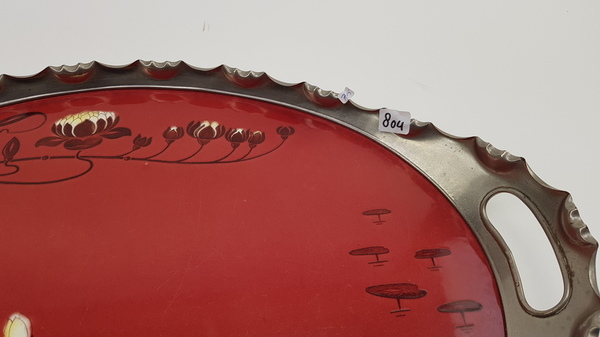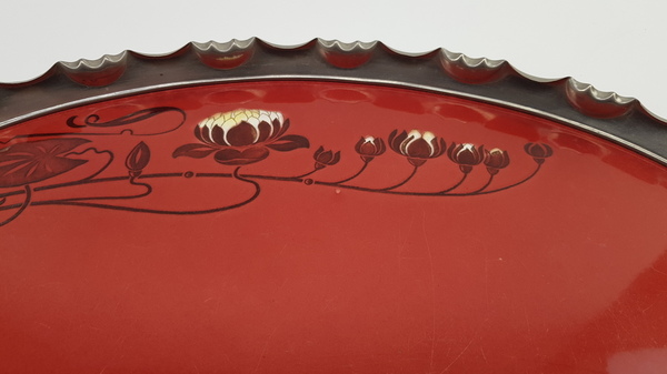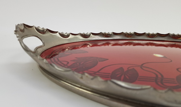 Ovaal dienblad met Jugendstil motieven en geschulpte rand, Duitsland ca. 1920 |