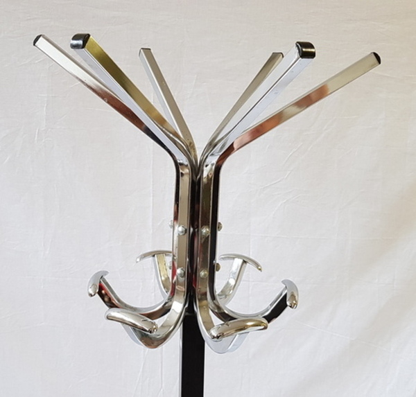 Metaal/chroom, staande kapstok. midden 20e eeuw. |