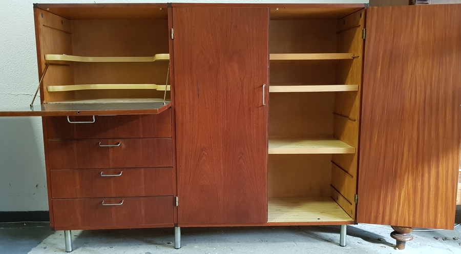 Hout/fineer, barmeubel ontwerp Cees Braakman voor Pastoe. Nederland midden 20e eeuw. Uit de serie "made to measure". |