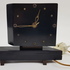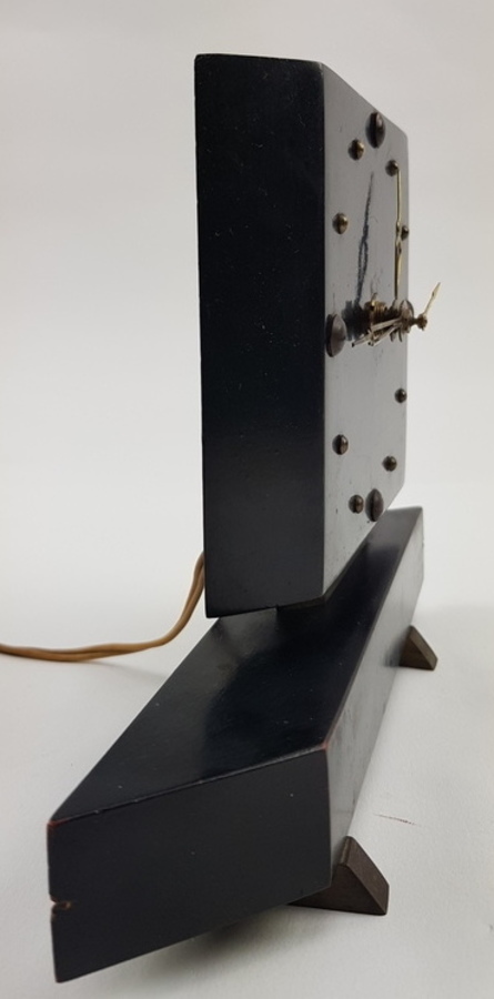 Houten klok met elektrisch uurwerk, asymetrische vormgeving jaren 50