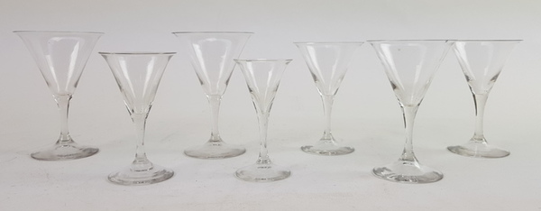 Rijnwijn glazen servies A glad, K.P.C. de Bazel, Leerdam, 1917, 7 stuks |