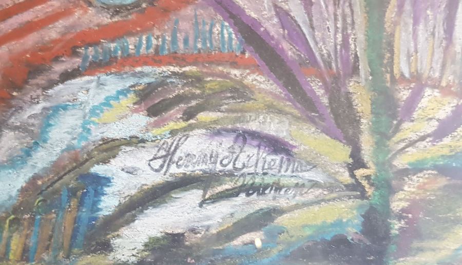 | Naam | Gouache, fantasielandschap, vogels en figuren door Henny Arkema- Niezen. | |