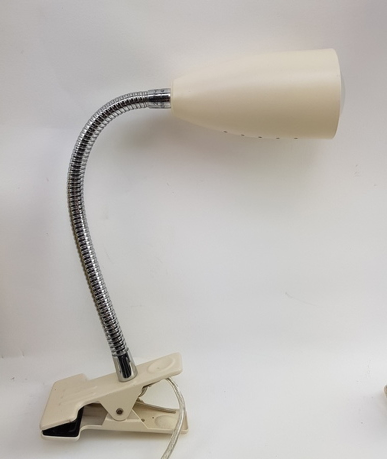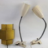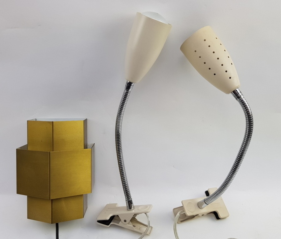 Metalen wandlamp en twee bureaulampen, midden 20e eeuw