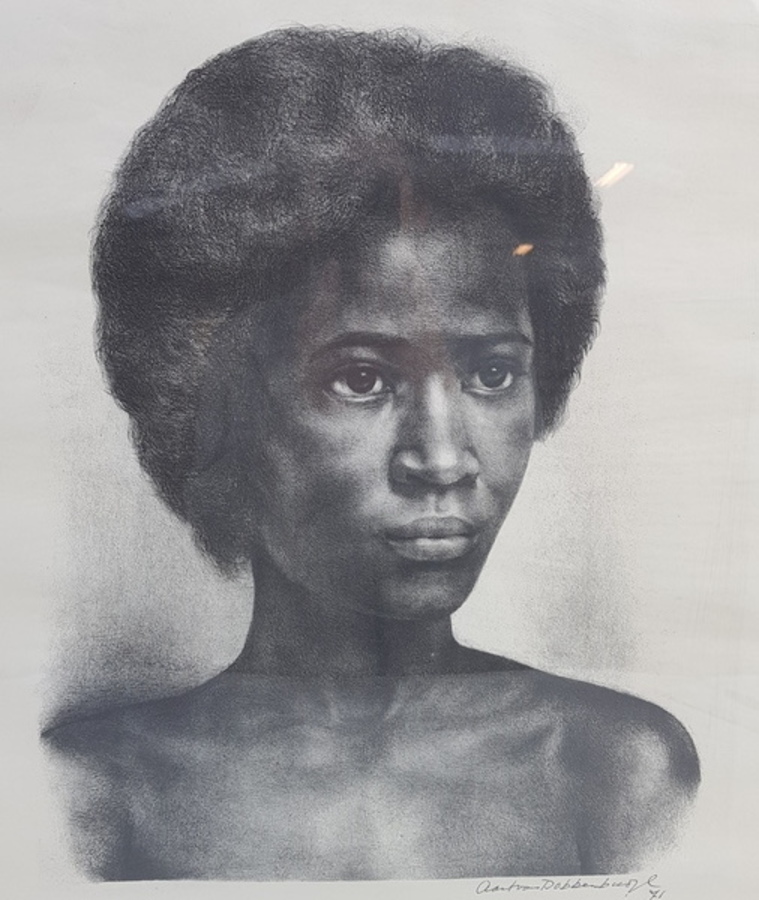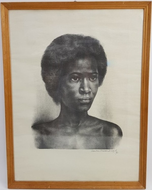 Lithografie, portret van donkere vrouw, gesigneerd Aart van Dobbenburgh