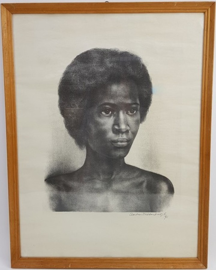 | Naam | Lithografie, portret van donkere vrouw, gesigneerd Aart van Dobbenburgh | |