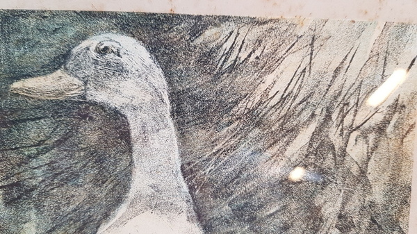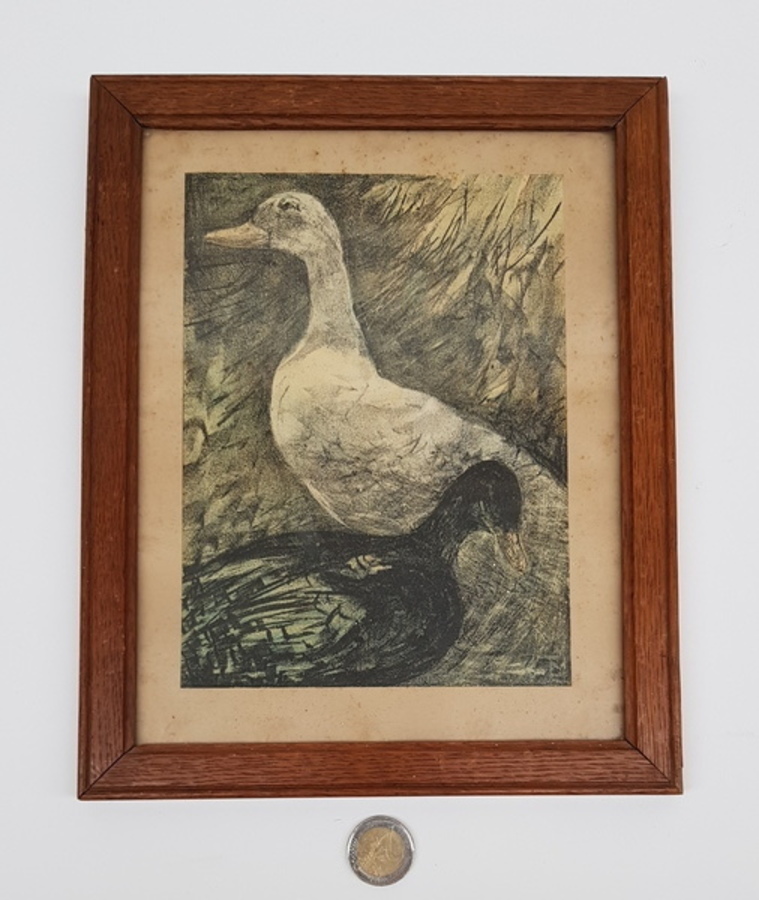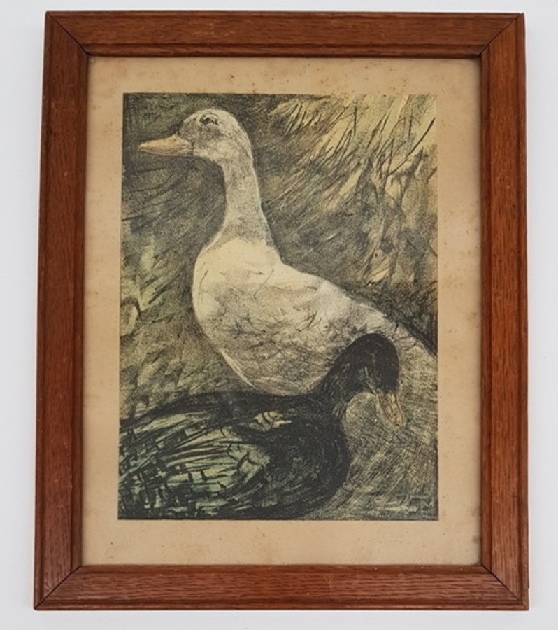 Litho, gesigneerd met monogram Theodorus van Hoytema. Theodorus van Hoytema, 1863-1917, was een Nederlands tekenaar, lithograaf en grafisch ontwerper. Vooral bekend om zijn lithografische plaatjesboeken met vogelverhalen. |