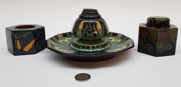 Aardewerk inktpotten Plateelbakkerij Rozenburg en Zuid Holland, begin 20e eeuw |