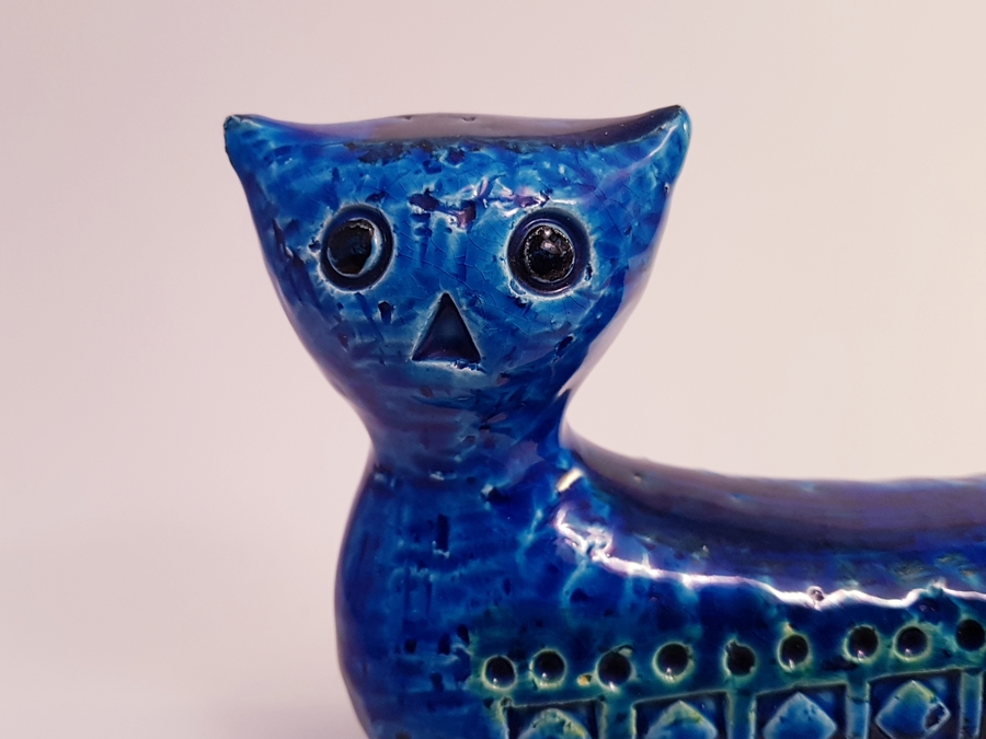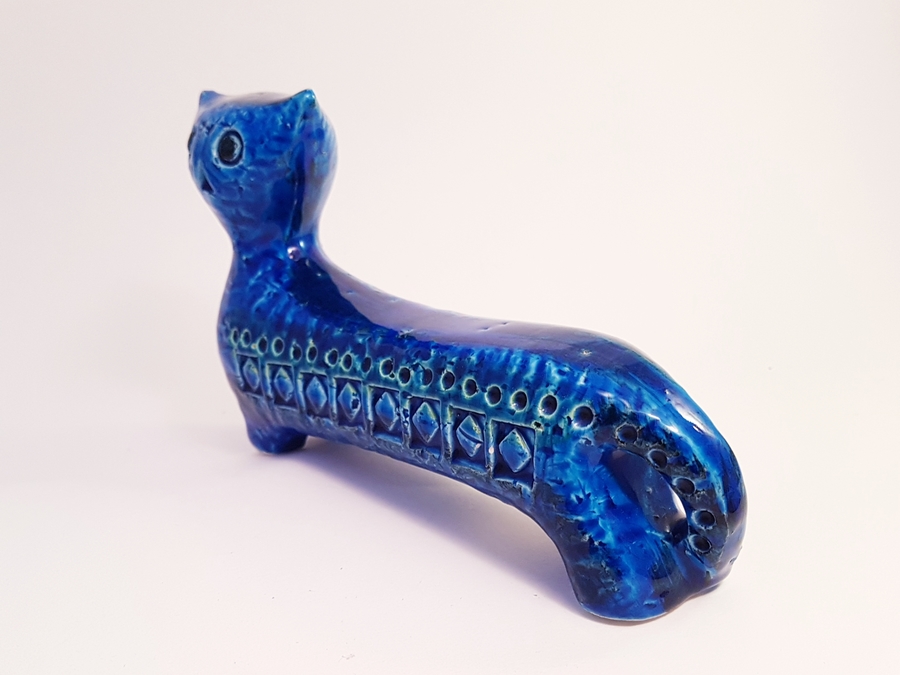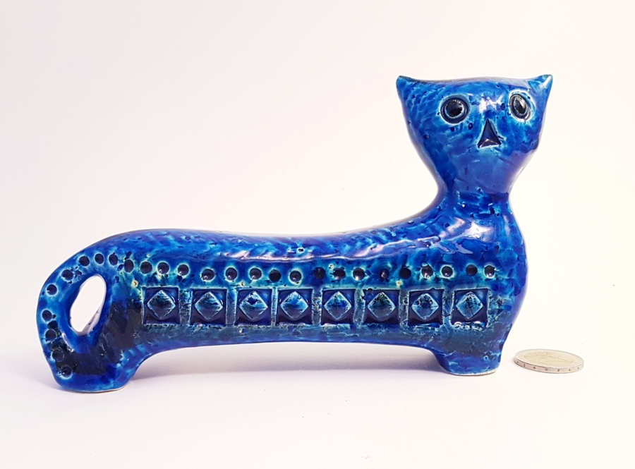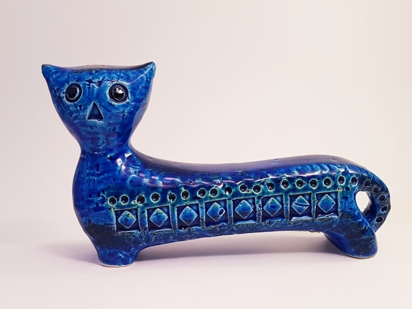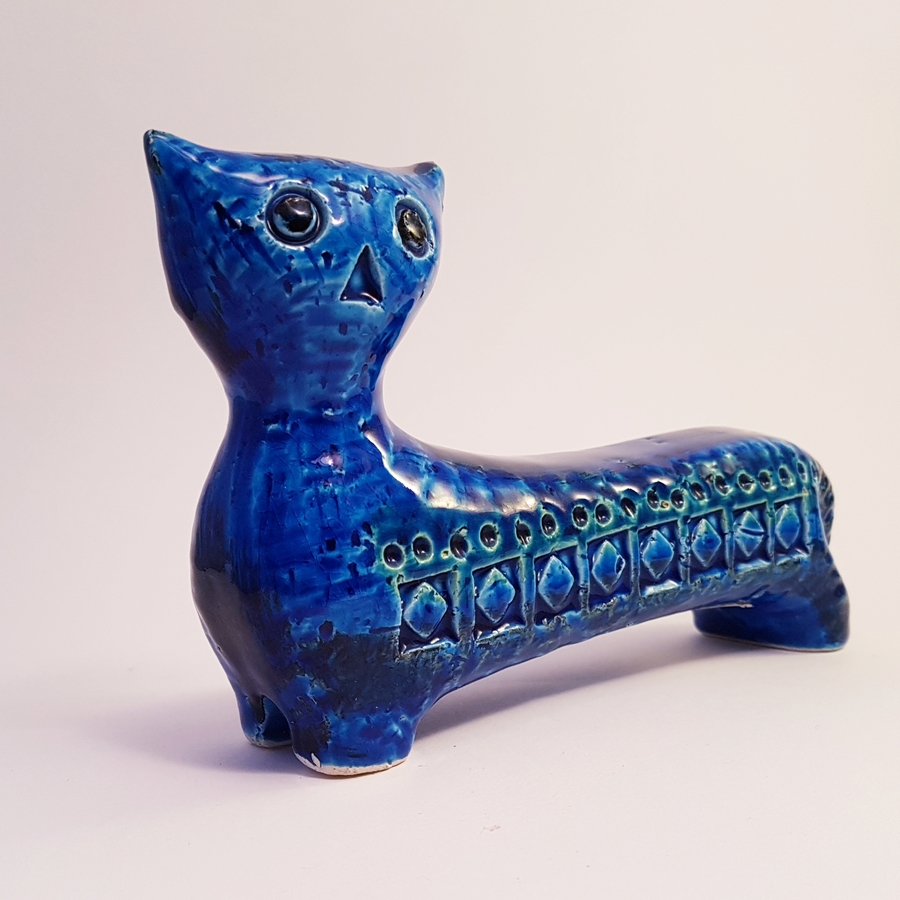 Rimini Blue aardewerk kat, ontwerp Aldo londi voor Flavia Montelupo. Italië ca 1975.