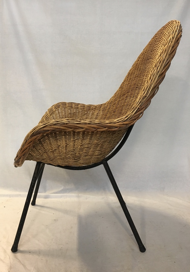 Metaal en riet, design kuipstoel, jaren 60 / 70 |