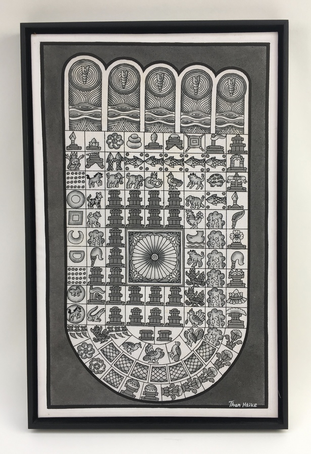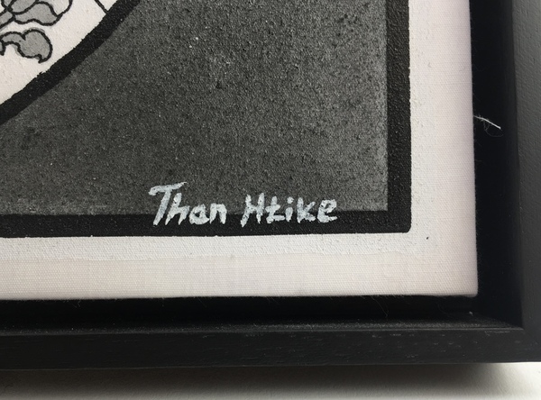 Gemengde techniek, schilderij gesigneerd Than Htike. |