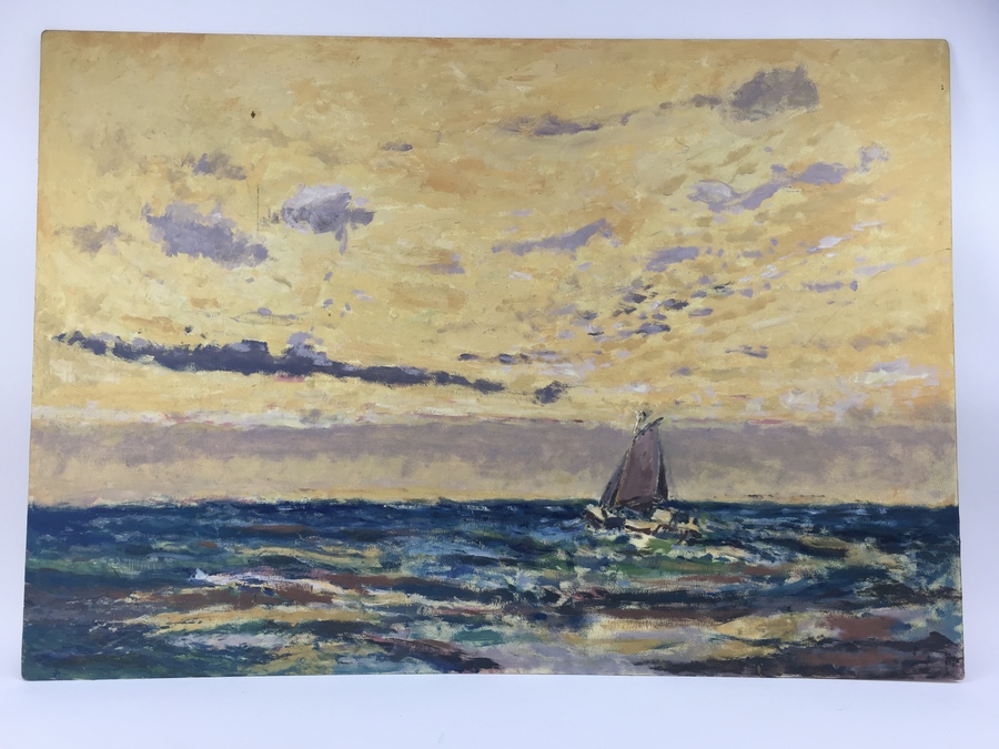 | Naam | Schilderij, hardboard plaat, zeilboot op volle zee, 20e eeuw | |