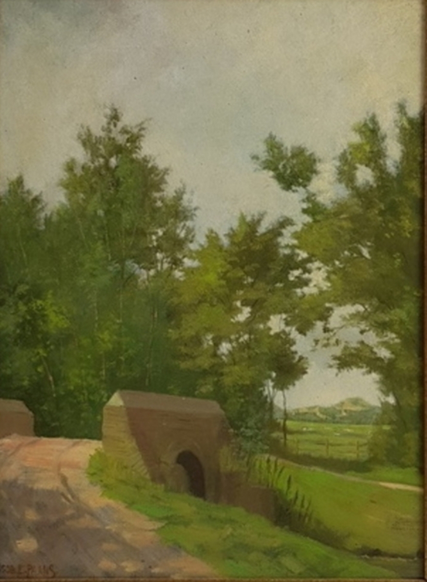 Schilderij van een landschap door Jacob. E. Paans (1876-1972). Haagse school, olieverfschilderij op paneel. Eerste helft 20e eeuw. |