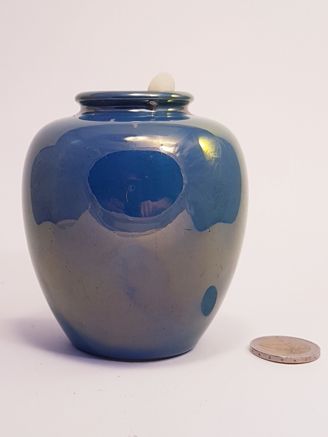 Aardewerk /Lusterglazuur kleine vaas van St.Lukas. Nederland ca. 1920.