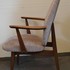 Hout / stoffen Vintage stoel met armleuningen, vermoedelijk Scandinavisch, midden 20e eeuw. |