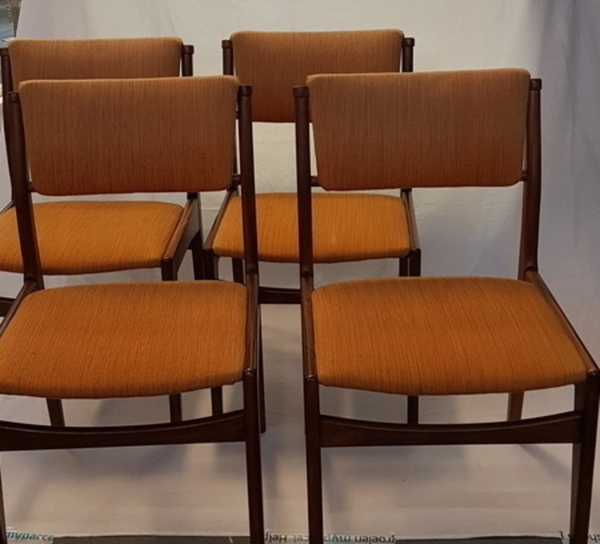 Hout/ stof vier vintage eetkamerstoelen. Midden 20e eeuw. |