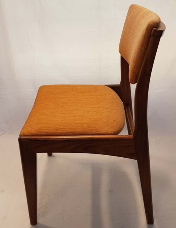 Hout/ stof vintage eetkamerstoelen, midden 20e eeuw.