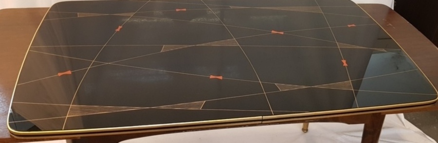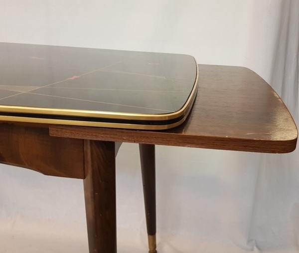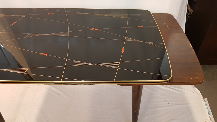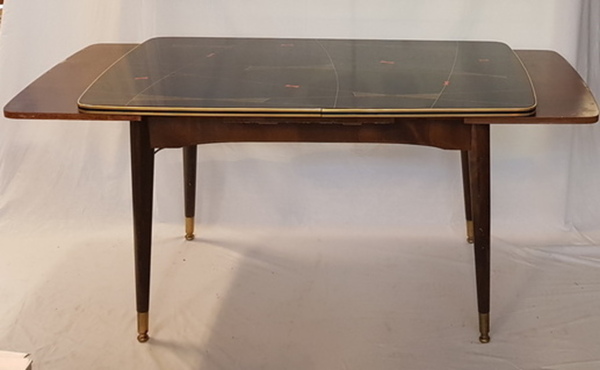 | Naam | Hout/ glas, vintage uittrektafel. Vermoedelijk Duitsland midden 20e eeuw. | |