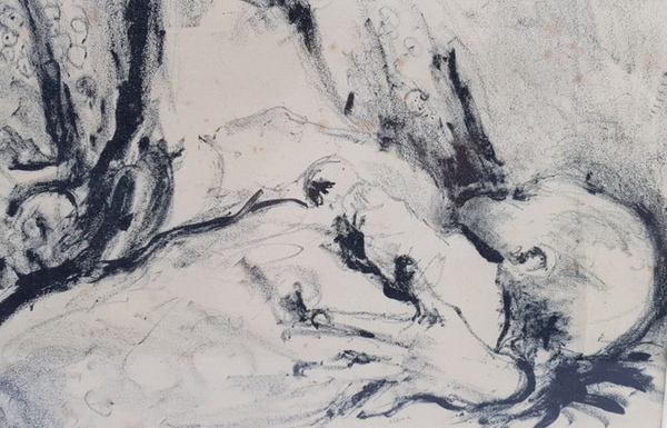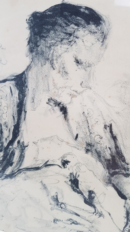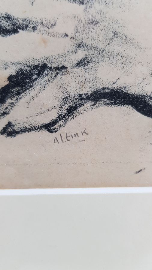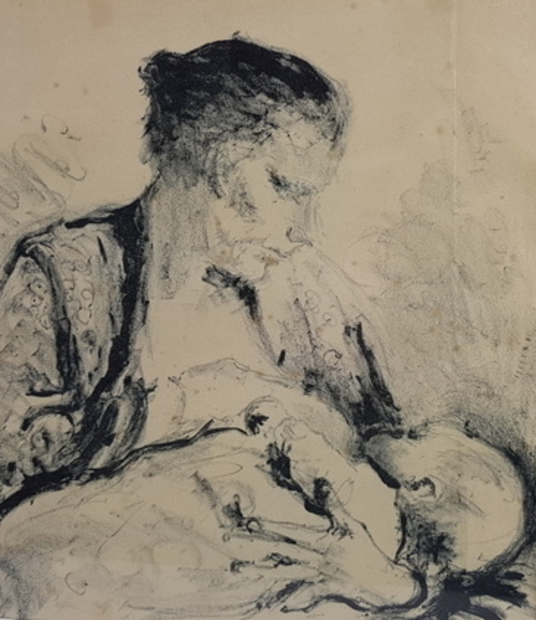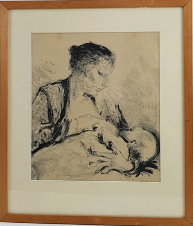 Zeefdruk moeder met kind ingelijst, aan voorzijde voorzien van opschrift 'Altink' . |