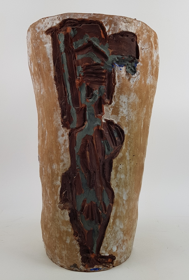 | Naam | Keramiek, zware handgevormde vaas, onduidelijk gesigneerd, 20e eeuw | |