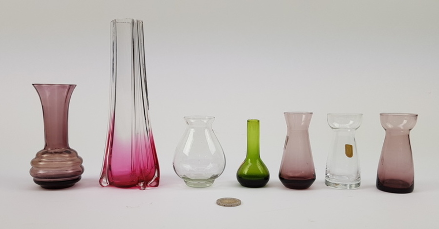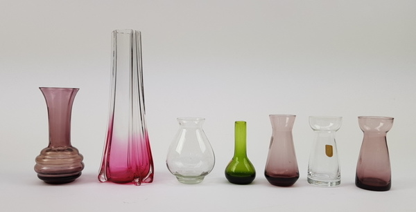 Glazen vaasjes wo. Hyacintvaasjes en Cranberry glas, 20e eeuw |