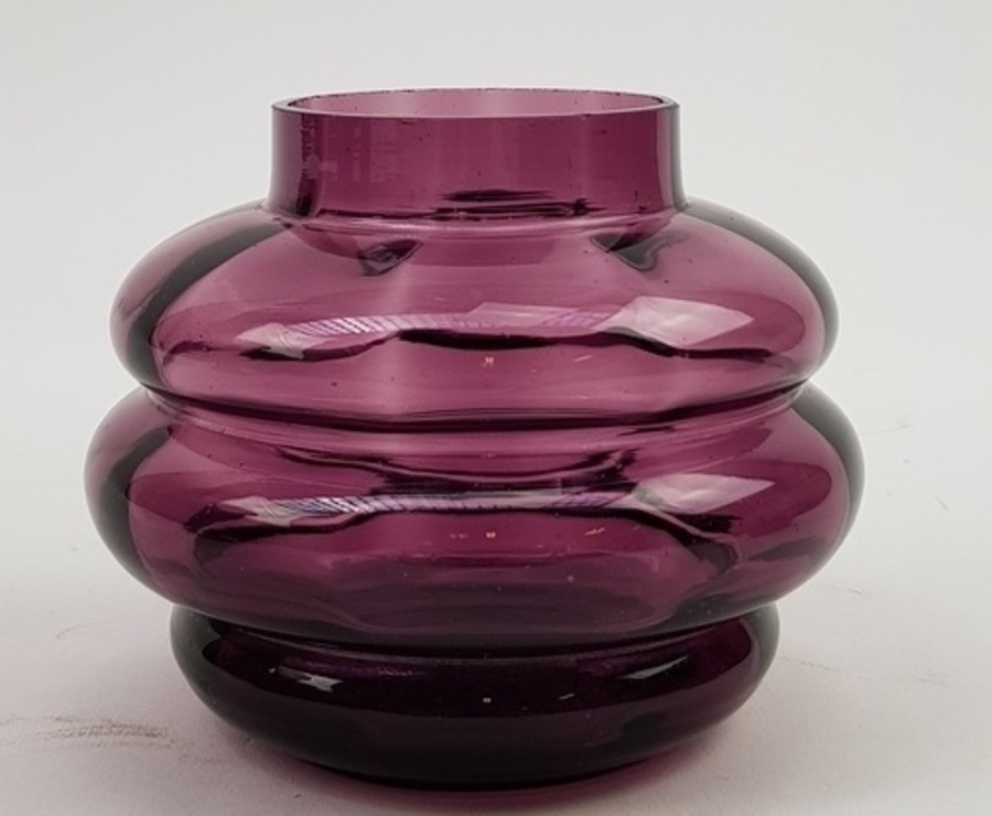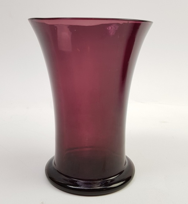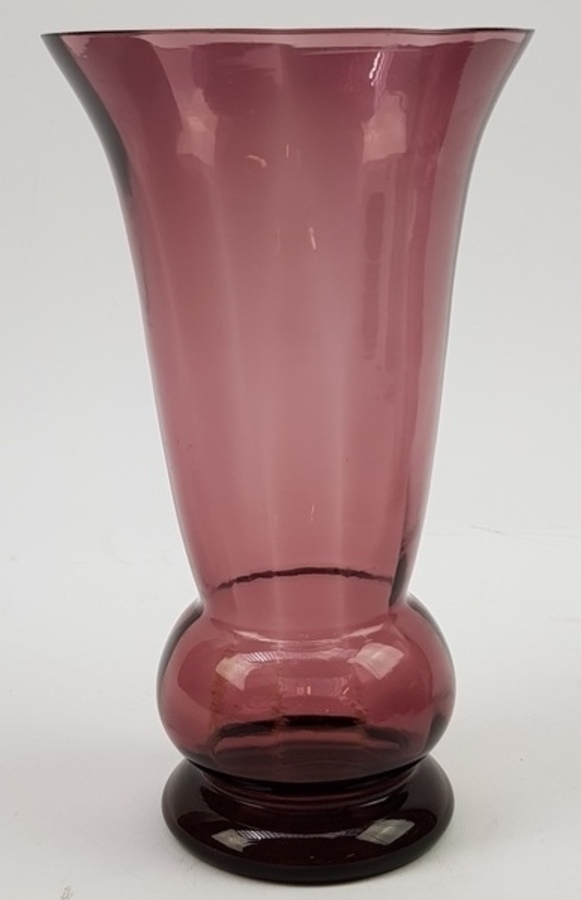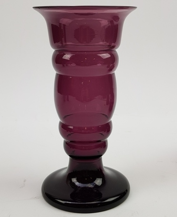 Glasvazen uitgevoerd in paars glas, Boom / Doyen België, eerste helft 20e eeuw
