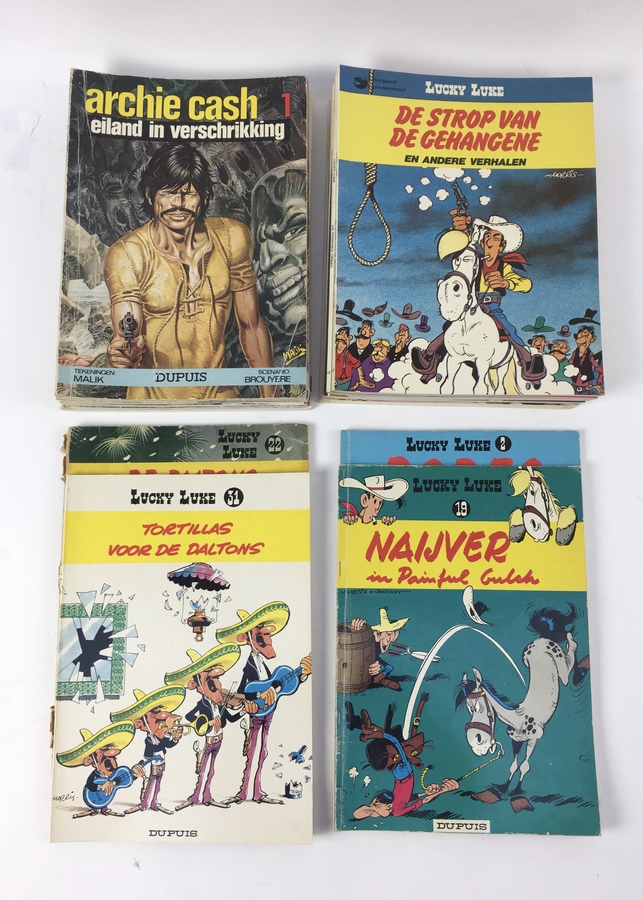 Archie Cash deel 1 t/m 10, Lucky Luke uitgeverij Dargaud deel 2, 4, 7, 9, 10, 16, 18 en 19. Uitgeverij Dupuis deel 2, 13, 22 en 31. 22 stuks |