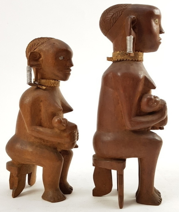 Houten beelden van vrouwen Neder-Kongo Vili, midden 20e eeuw |