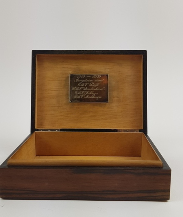 | Afmetingen | Suikertang lengte 12,5 cm, bonbonschaal hoogte 9 cm en doornsnede 13 cm, schaal doorsnede 14 cm. Een doos 18 x 13,5 x 5,5 cm en een doos 13 x 10 x 3 cm. |