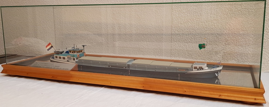 | Afmetingen | Totale lengte vitrine 97,5 cm, hoogte 28,5 cm en diepte 32 cm. |