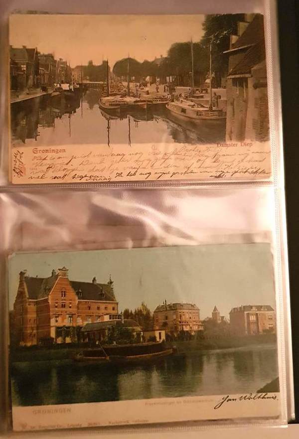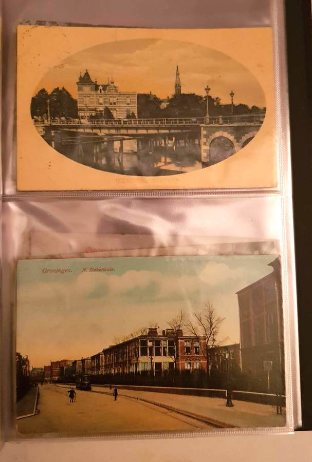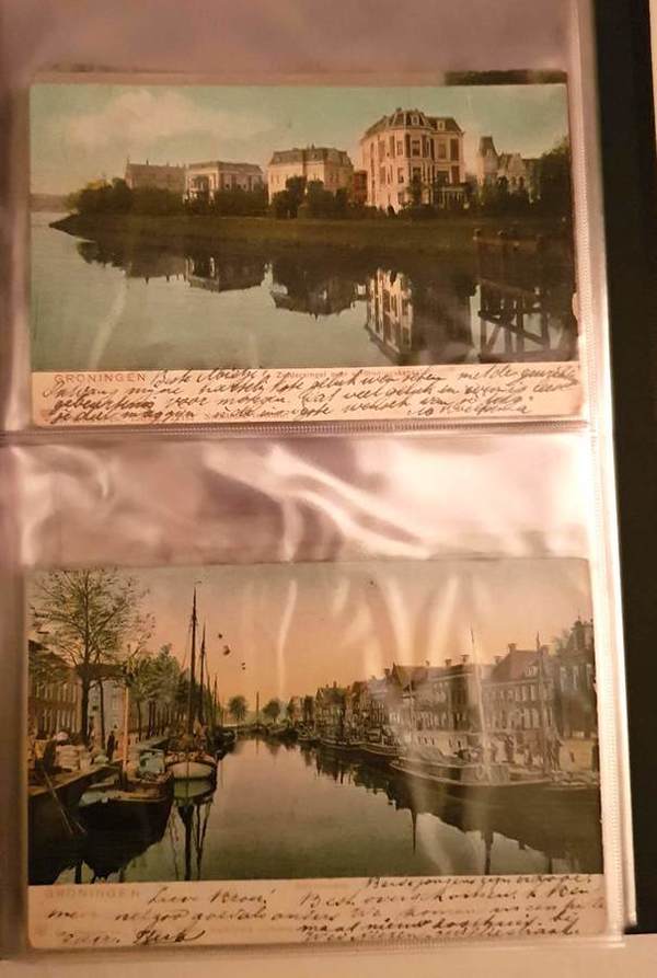 Lot anischtkaarten mbt de stad Groningen Periode 1900-1920. In insteekalbum 60x totaal |