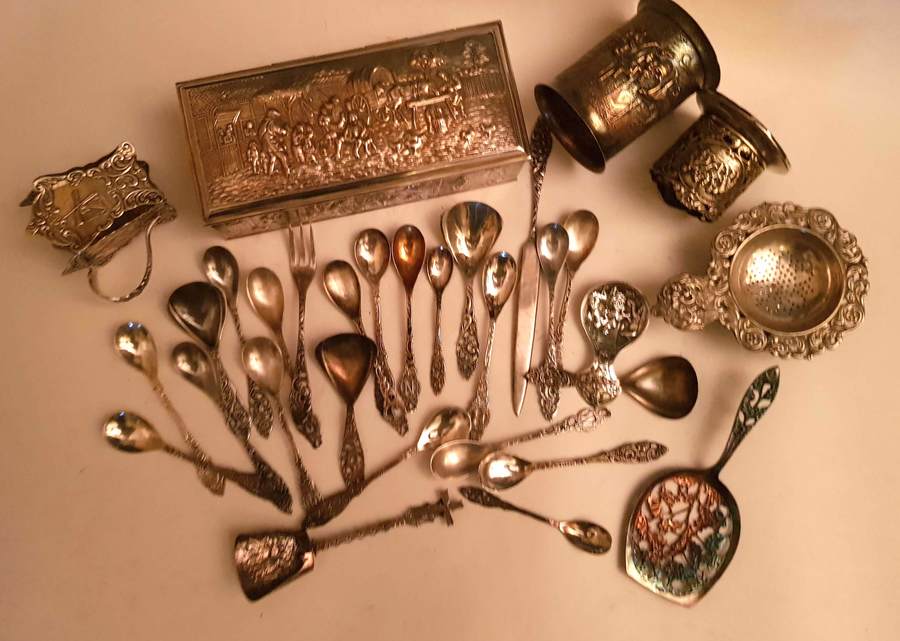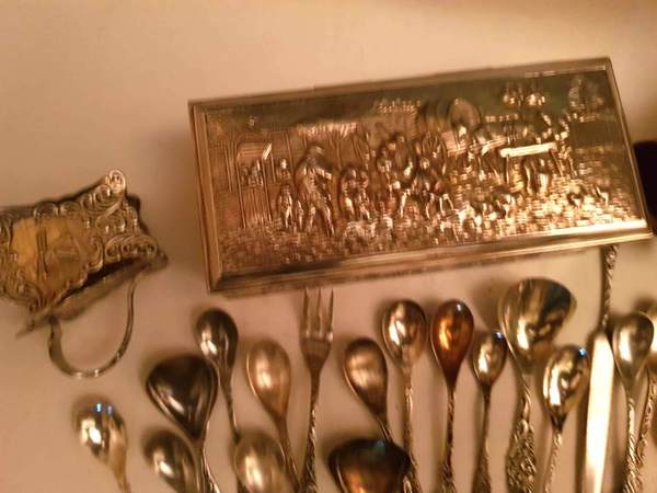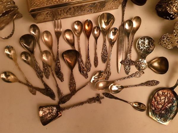 Lot plated oud hollands bestek en lepeldoos |