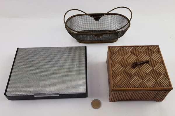 Lot curiosa bestaande uit een motenmand, sigarettendoos en een Japans doosje, 20e eeuw |