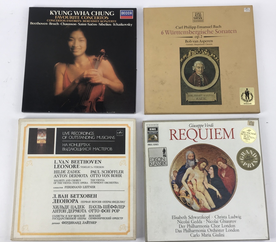 Groot lot diverse elpees o.a. 22 verzamelboxen o.a. Maria Callas. Enkele elpees 64 stuks o.a. Schubert en Mozart. |