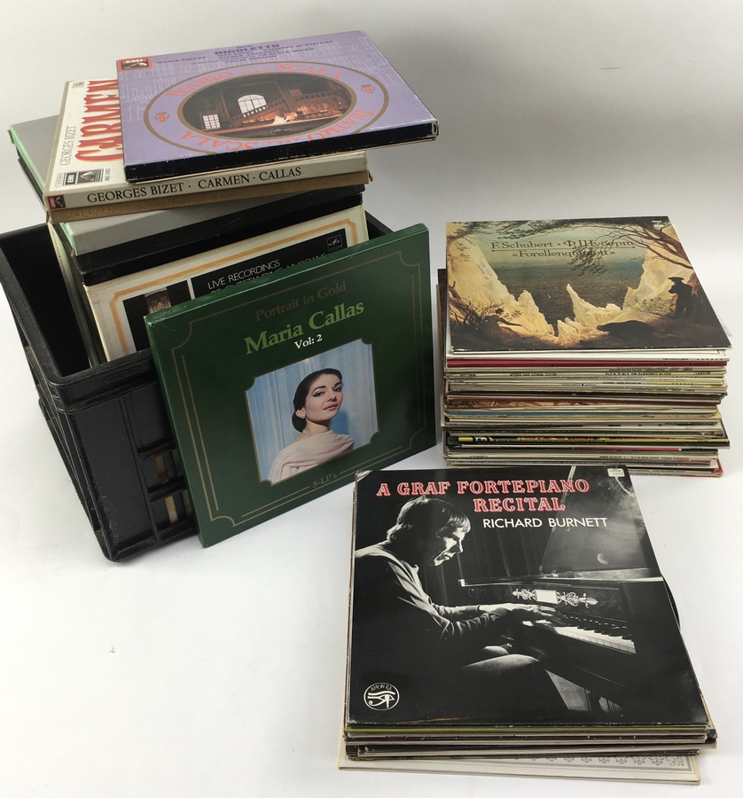 Groot lot diverse elpees o.a. 22 verzamelboxen o.a. Maria Callas. Enkele elpees 64 stuks o.a. Schubert en Mozart.