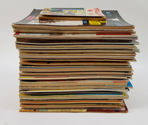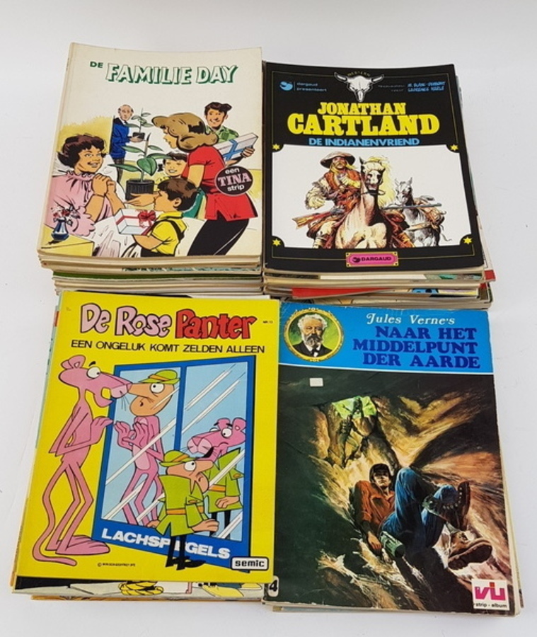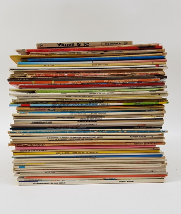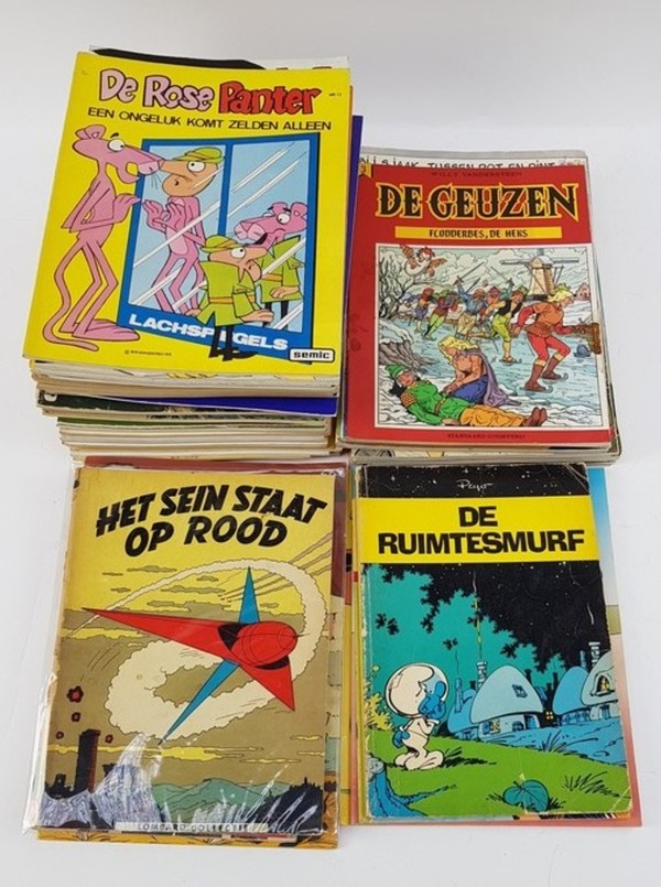 Lot met circa drieënzestig stripboeken onder andere De Smurfen, Kid Colt, Laurel & Hardy, Agent 212, BIlly Turf, German en wij, Storm en FC Knudde. |