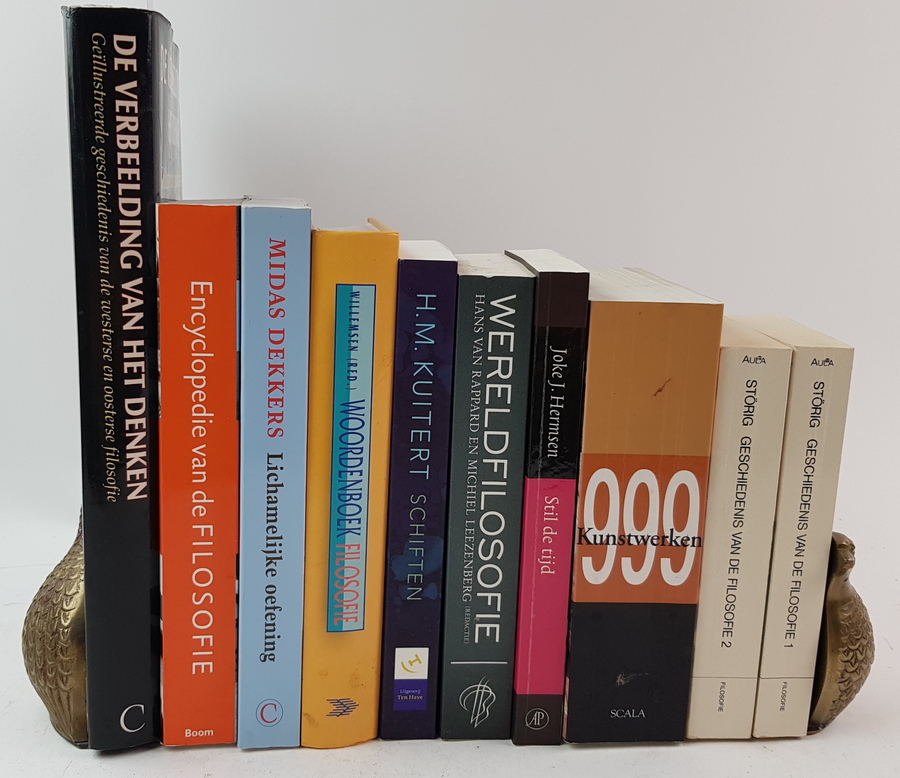 Een lot van 10 boeken met betrekking tot filosofie, waaronder Hans van Rappard en Michiel Leezenberg (red.): Wereldfilosofie (Wereldbibliotheek, 2010) en Laurens ten Kate (samenst.): Encyclopedie van de Filosofie (Boom, 2007). [Totaal: 10]. |
