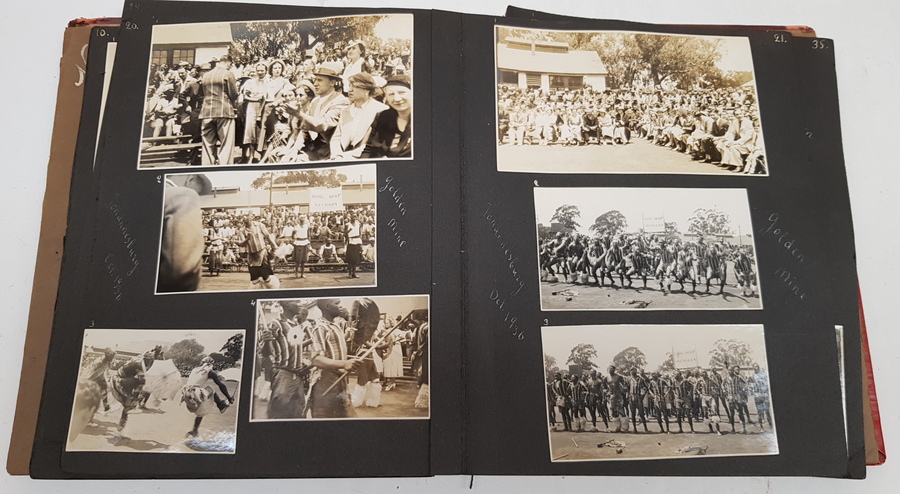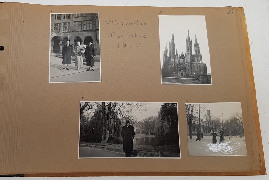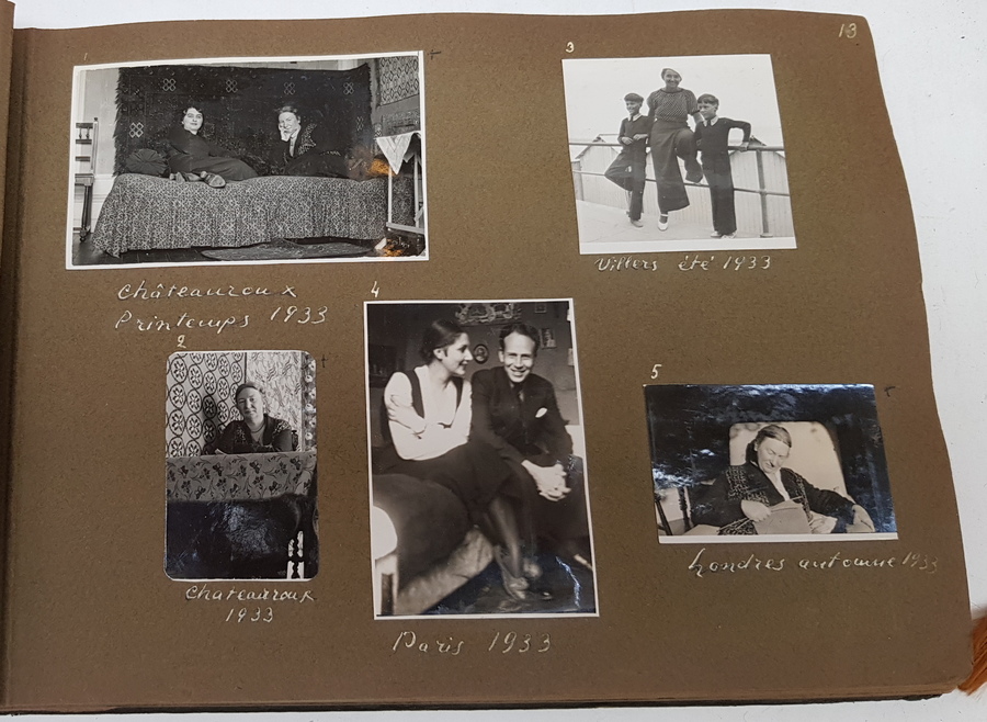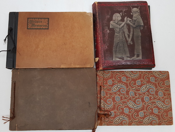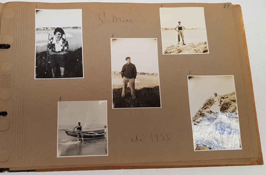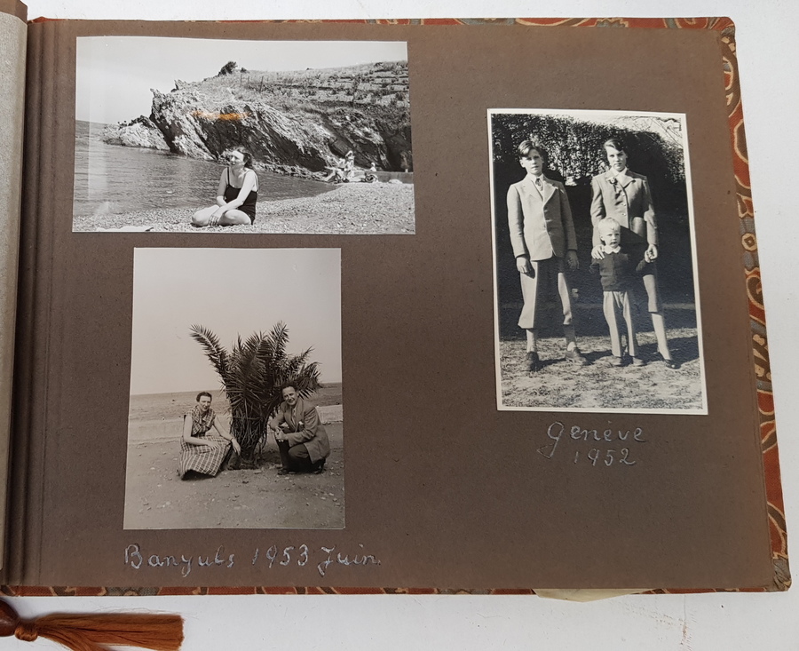 Een lot van 4 albums met privefoto's uit de jaren '30 tot begin jaren '50. In de albums foto's van mensen -vermoedelijk dezelfde familie - op reizen. Veel Europa (Frankrijk, Engeland, Zwitserland etc.) maar ook Zuid-Afrika. [Totaal: 4 albums]. |