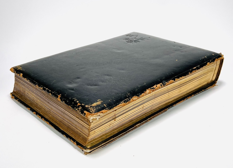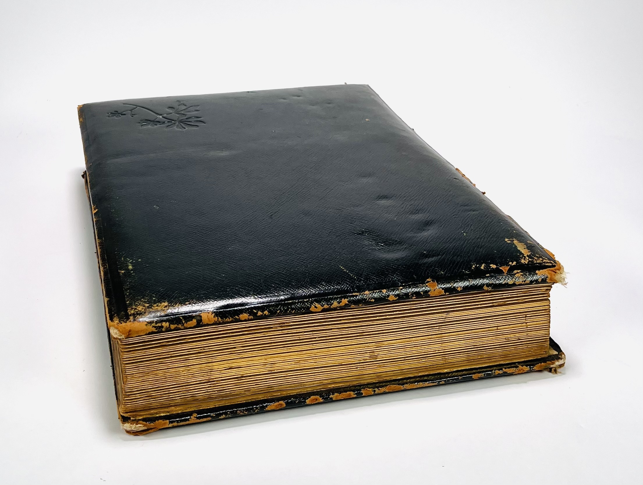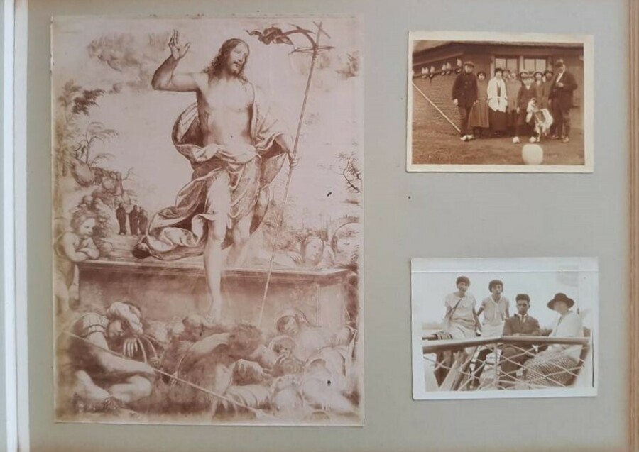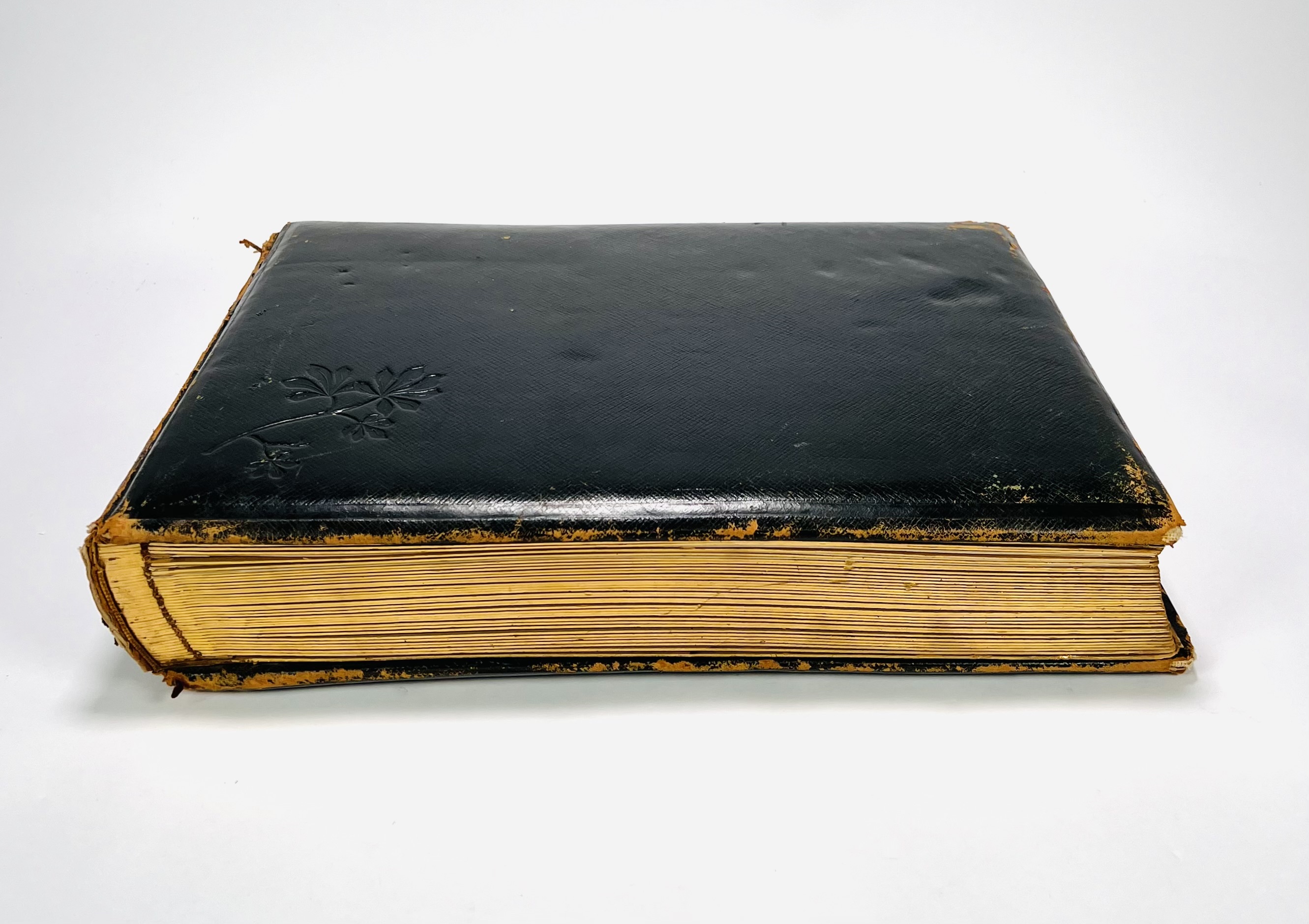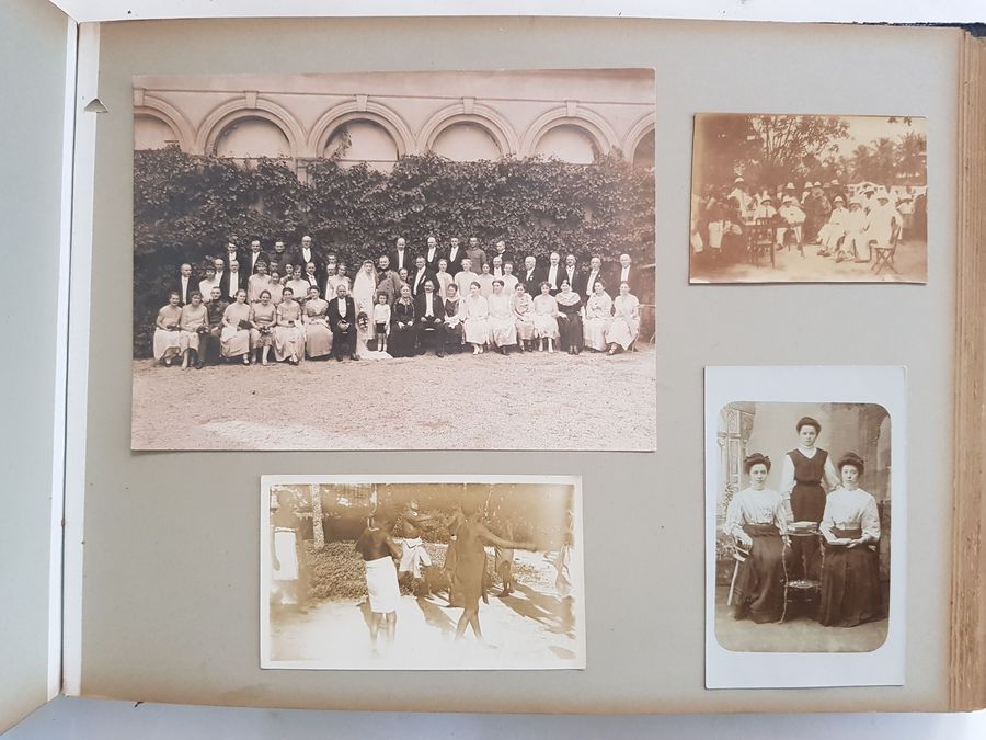 Oblongformaat zwart album, gevuld met veelal albumine foto's van topografische onderwerpen, familie en foto's van kunst uit de periode 1870-1910. Topografisch onder andere Amsterdam. Scheveningen, Parijs en meer. Circa 200 fotografische afbeeldingen. |
