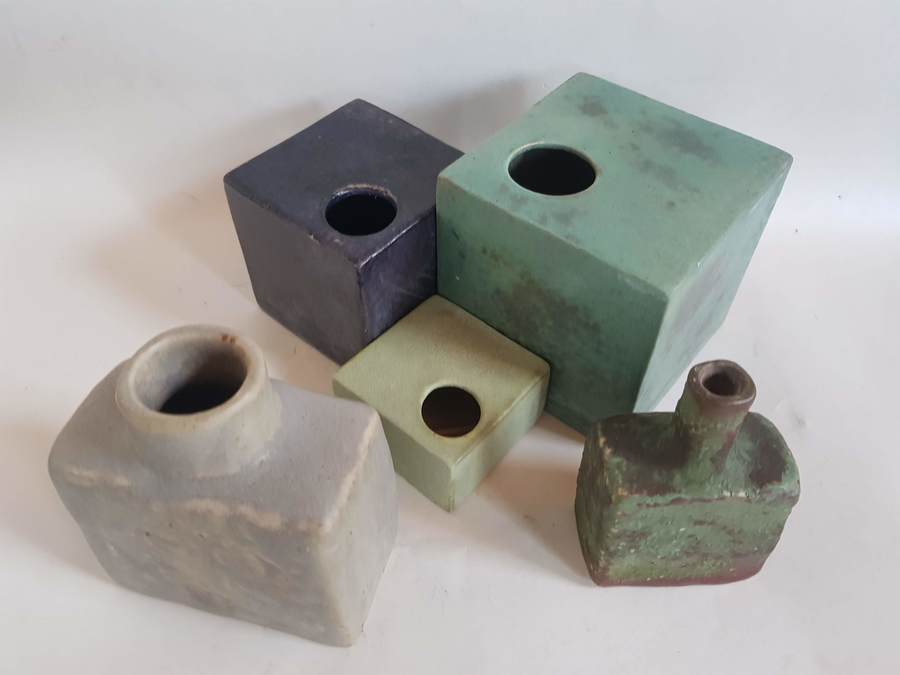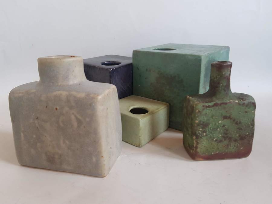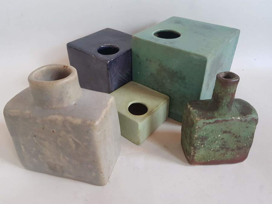 Een lot met blok vaasjes jaren 60 |