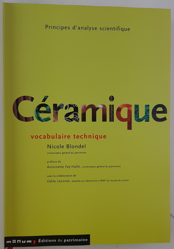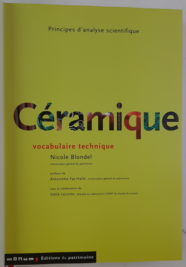 Nicole Blondel - Ceramique. Vocabulaire, technique. Paris: Editions du patrimoine, 2001. Hardcover, gebonden in linnen met stofomslag. Met vele afbeeldingen in kleur. 4vo (31x22 cm). 429pp. |