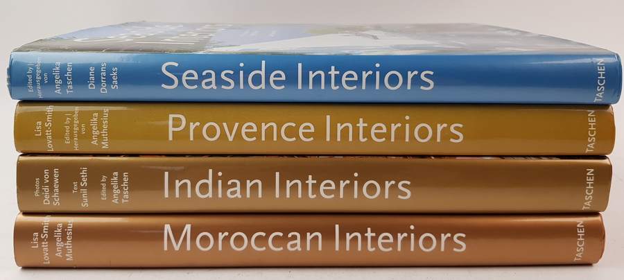 Een lot van 4 uitgaves van Taschen over interieurs: Seaside Interiors; Provence Interiors, Indian Interiors en Moroccan Interiors. Met vele fraaie illustraties in kleur. [Totaal: 4]. |