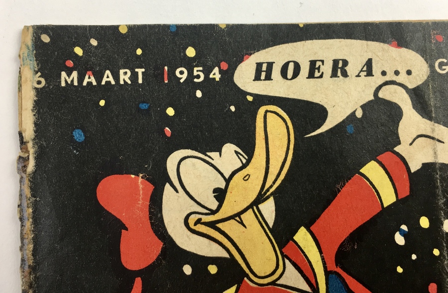 | Conditie | Mickey rug verstevigd met tape, lichte slijtage op kaft. Donald Duck beschadigd. | |