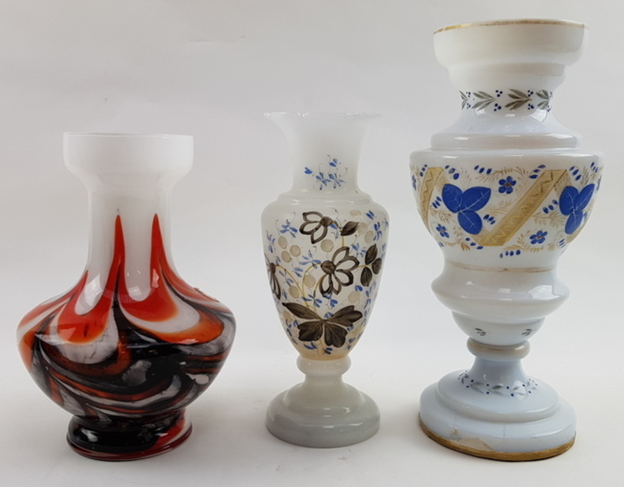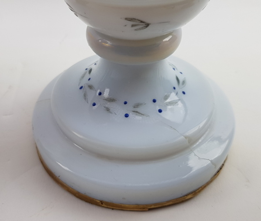 Opaline vazen, wo. handgeschilderd, 19e eeuw en 1970