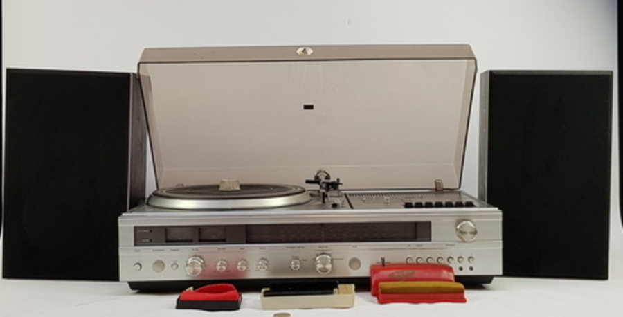 | Afmetingen | Stereo Centre lengte 64, breedte 42 cm en hoogte 22 cm. Boxen hoogte 38 cm en breedte 21 cm. |