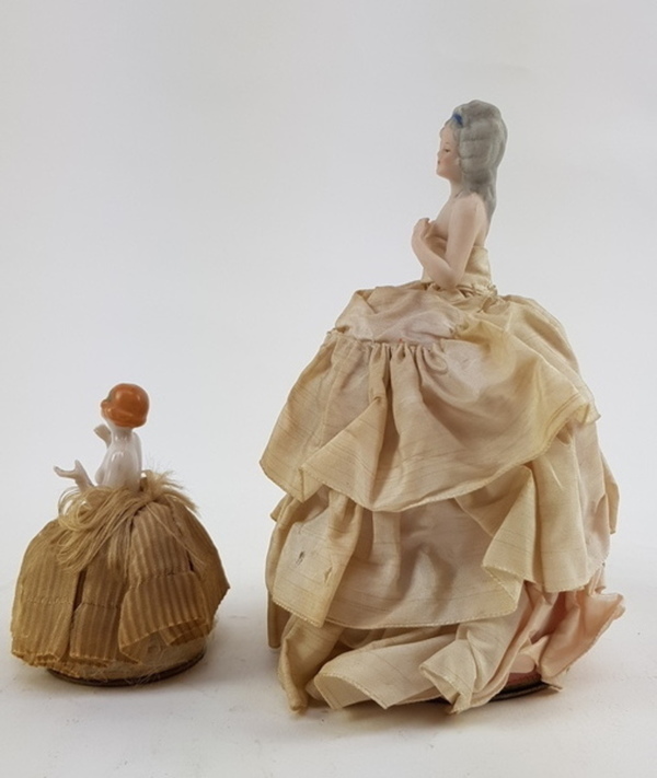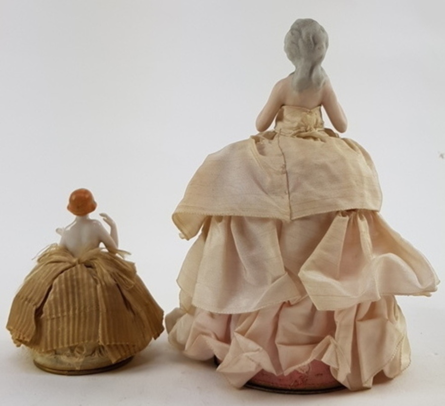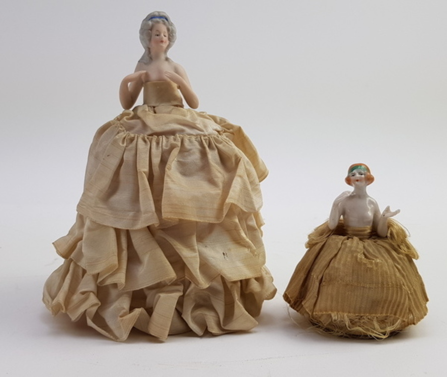 Porseleinen poppen met hoepelrokken, eerste helft 20e eeuw |