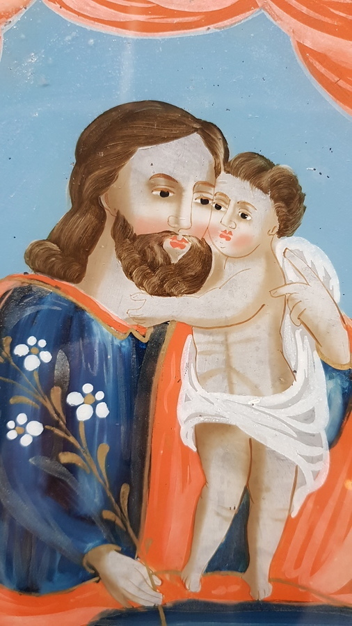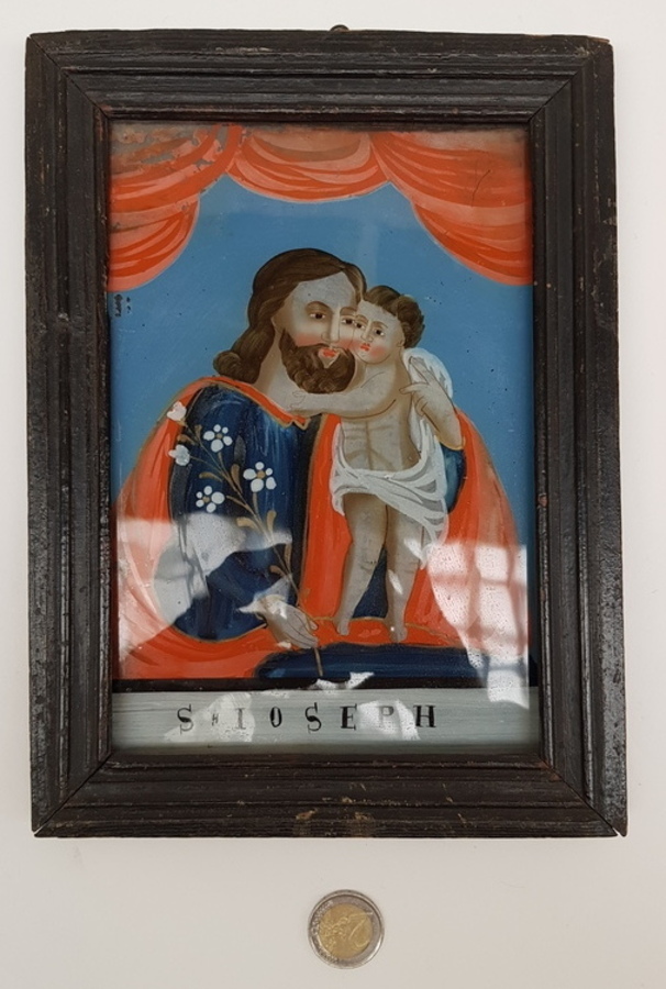 Achterglas schildering van St. Joseph, vermoedelijk Kaiserswalde, 19e eeuw |